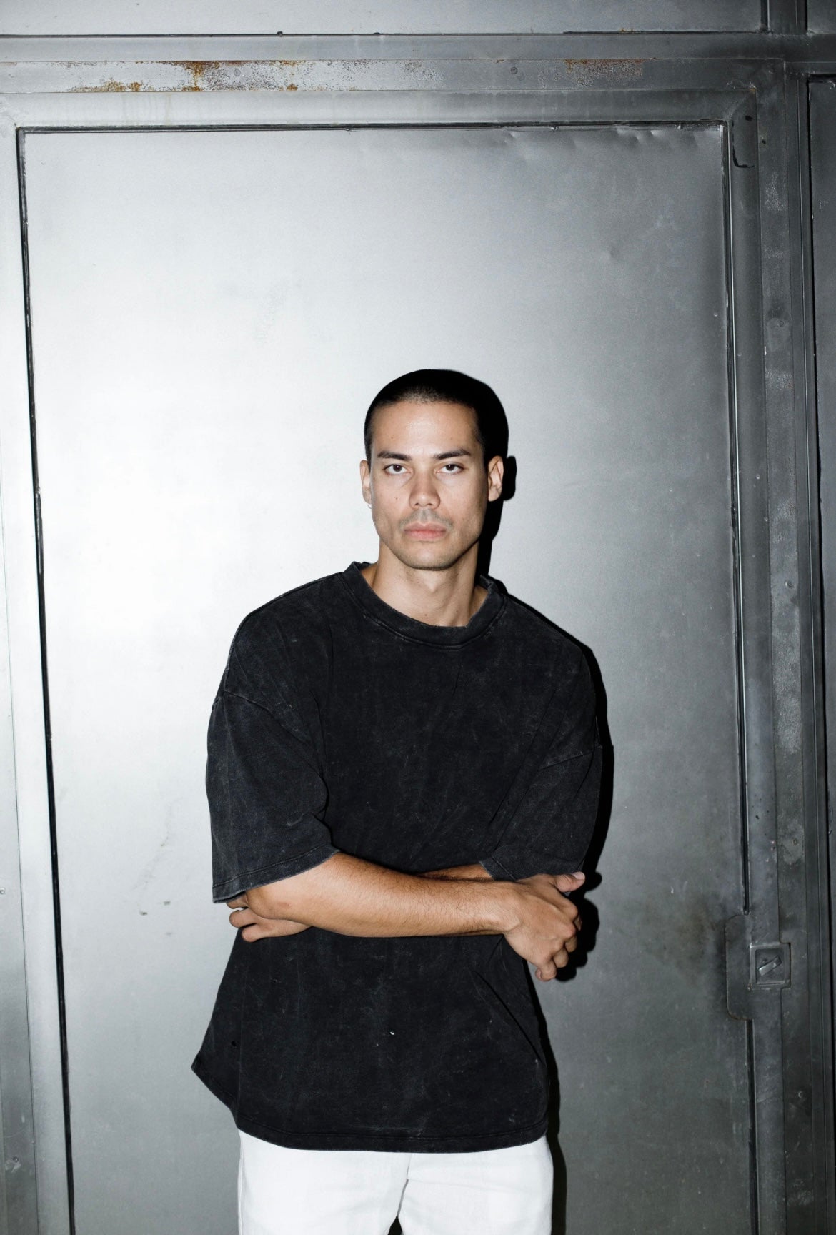 تيشيرت "ديستريسد بوكسي تيشيرت" مصنوع من قطن جيرسي ناعم وثقيل الوزن، ومُزين بطبقة غسيل كلاسيكية لإطلالة عصرية. يتميز هذا التيشيرت بتصميمه الواسع والواسع، وأكمامه الطويلة، وتفاصيله الدقيقة بثقوب وشقوق يدوية، حيث تكشف كل قطعة عن لمحات رقيقة من الجلد، وتتميز بطابعها الفريد. لا يوجد تيشيرتان متماثلتان.