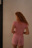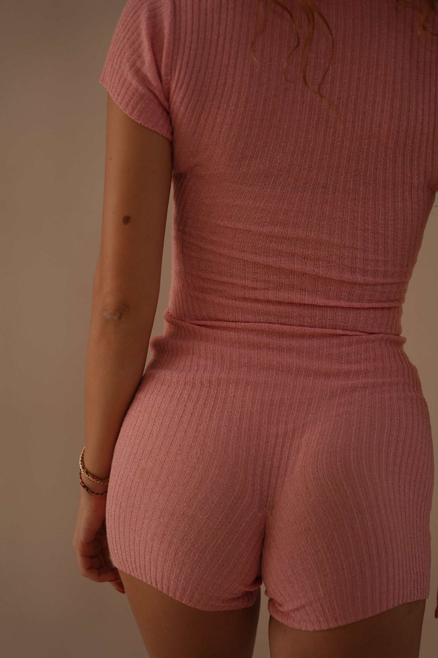 ROMPER PINK features a sleek acrylic construction designed for a flattering bodycon silhouette. The short-sleeved design pairs with functional front buttons for easy styling, while the integrated shorts provide practical coverage. Crafted for versatility, this one-size piece transitions seamlessly from casual daytime looks to evening outings. The breathable fabric ensures comfort throughout the day, making it an essential addition to any modern wardrobe.