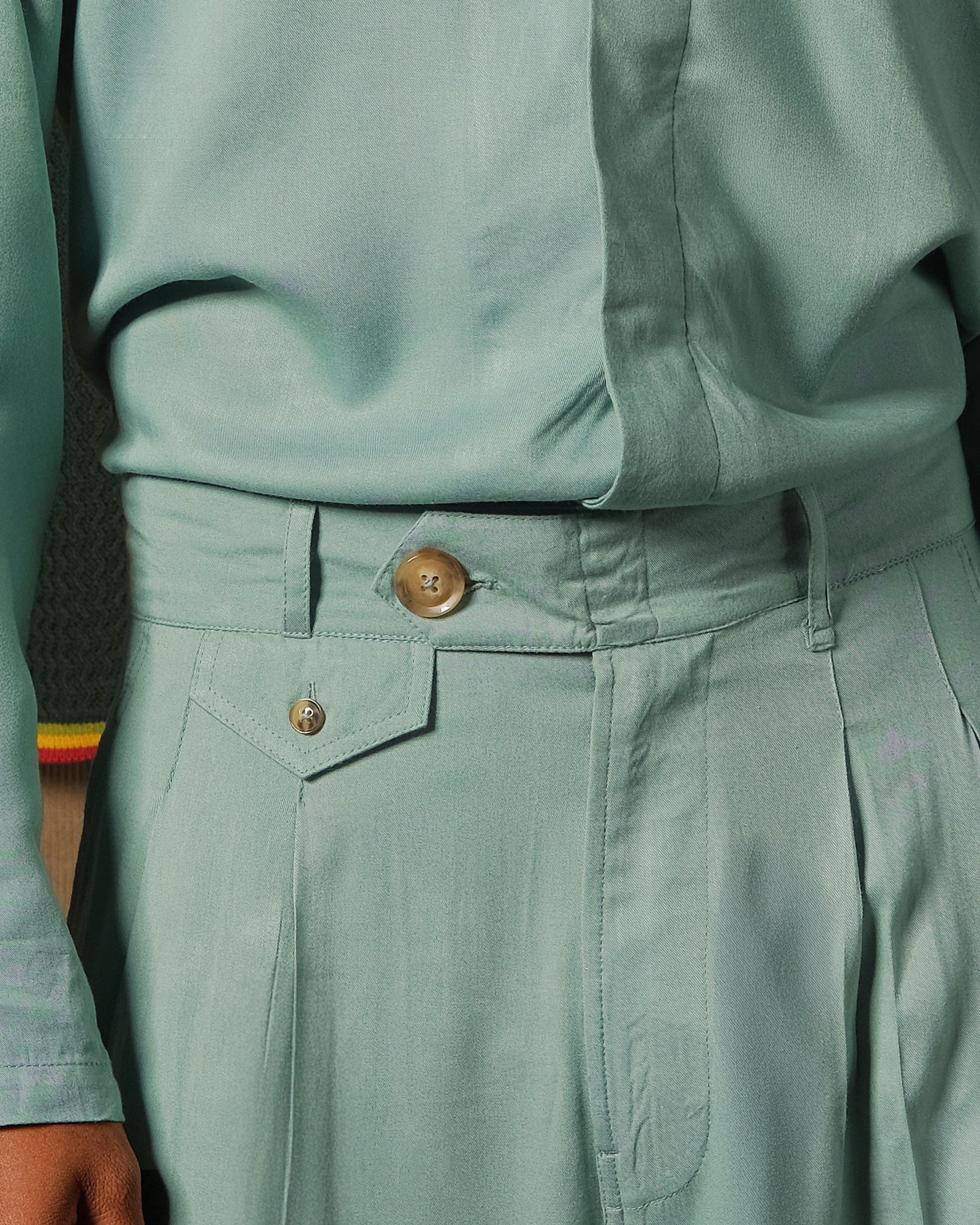 Crafted from premium rayon twill, the Lloyd Trinidad trousers deliver refined sophistication with a luxurious drape. The distinctive tosca hue -a muted teal-green - offers versatile styling potential across seasons. Engineered for comfort and durability, this fabric resists wrinkles while maintaining its elegant sheen. Perfect for elevated casual wear or professional settings, these trousers combine timeless tailoring with contemporary appeal.