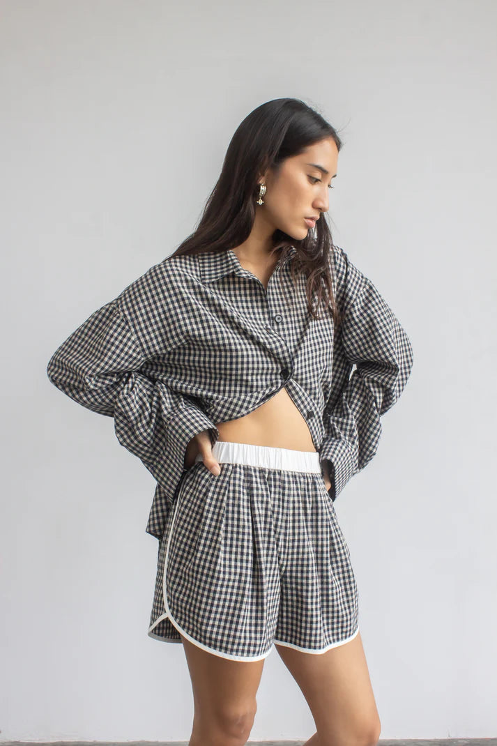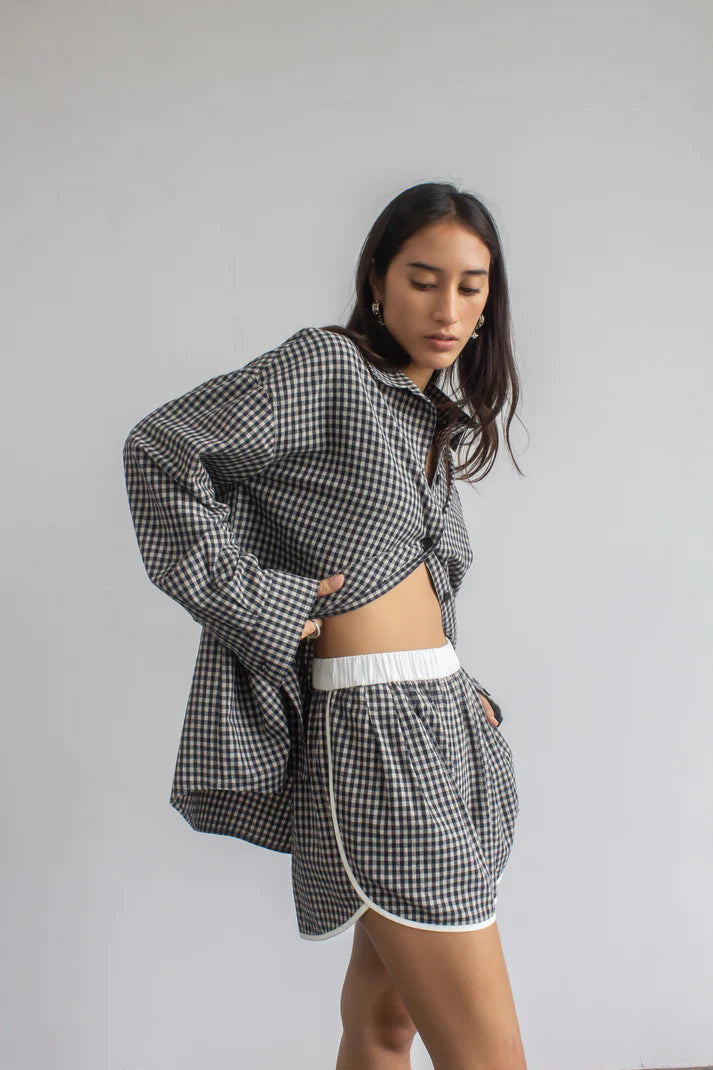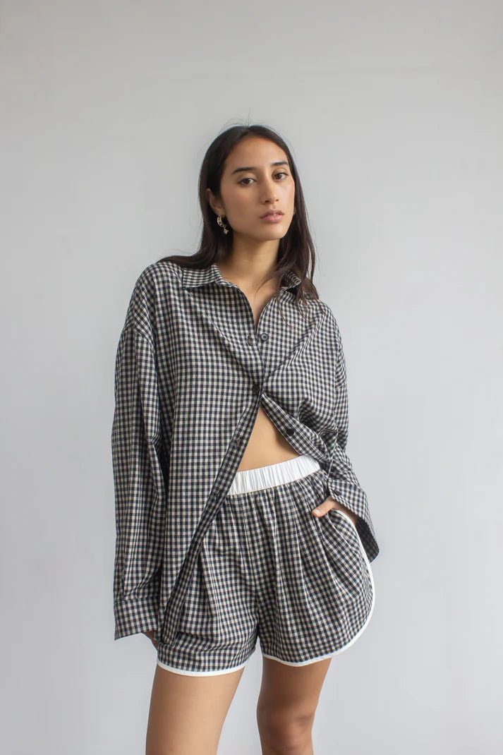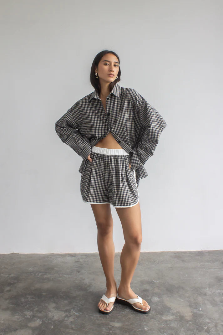 Designed with two outward-facing darts, these shorts create a unique, flattering silhouette. Crafted from a premium linen-blend fabric, they feel luxuriously soft against the skin for all-day comfort. Style them with the oversized shirt in the same fabric or a bamboo tank for an easy yet refined look.