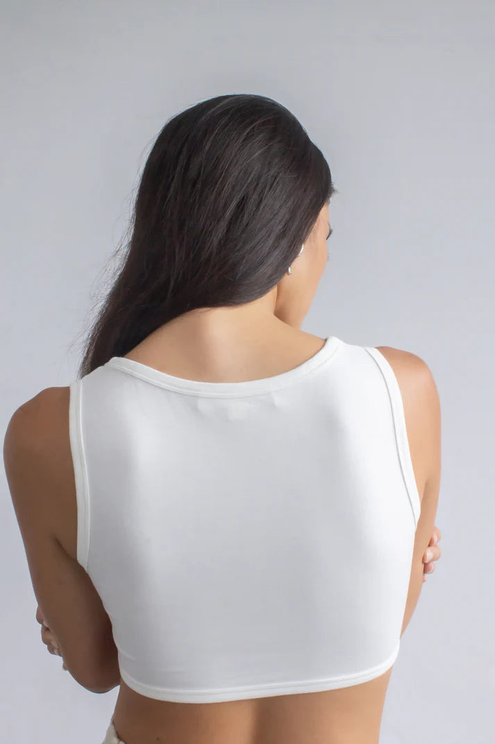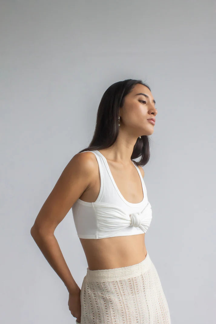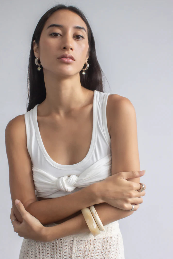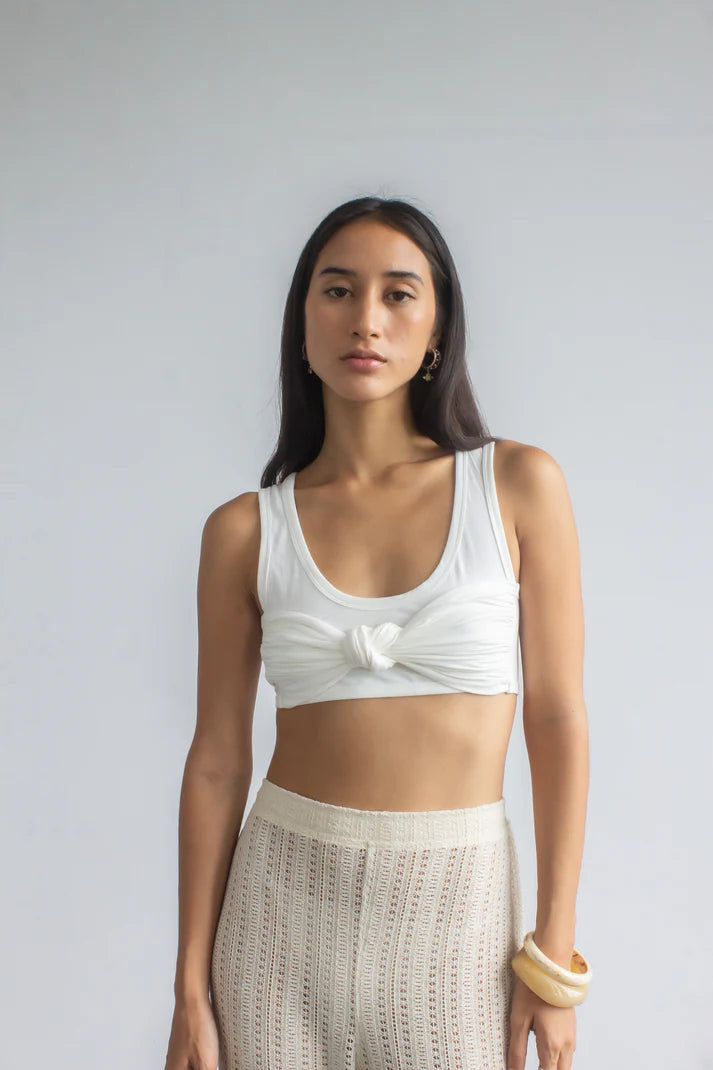 The styling options are endless with our "Not a must" bamboo tank top—wear it alone with embroidery pants, our tailoring pants, or your favourite jeans. It's made from ribbed-knit for a close fit and comes in off-white and black.