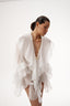 Elevate your wardrobe with the DRESS KIMONO KARINA WHITE, a sophisticated mini dress crafted from luxurious 100% viscose batiste. This expert-designed piece features delicate ruffles adorning the long sleeves and front, creating an effortlessly elegant silhouette. The fluid viscose fabric drapes beautifully while maintaining breathability, making it ideal for both warm-weather styling and layered looks. Perfect for those who appreciate refined details and quality construction in their everyday essentials.
