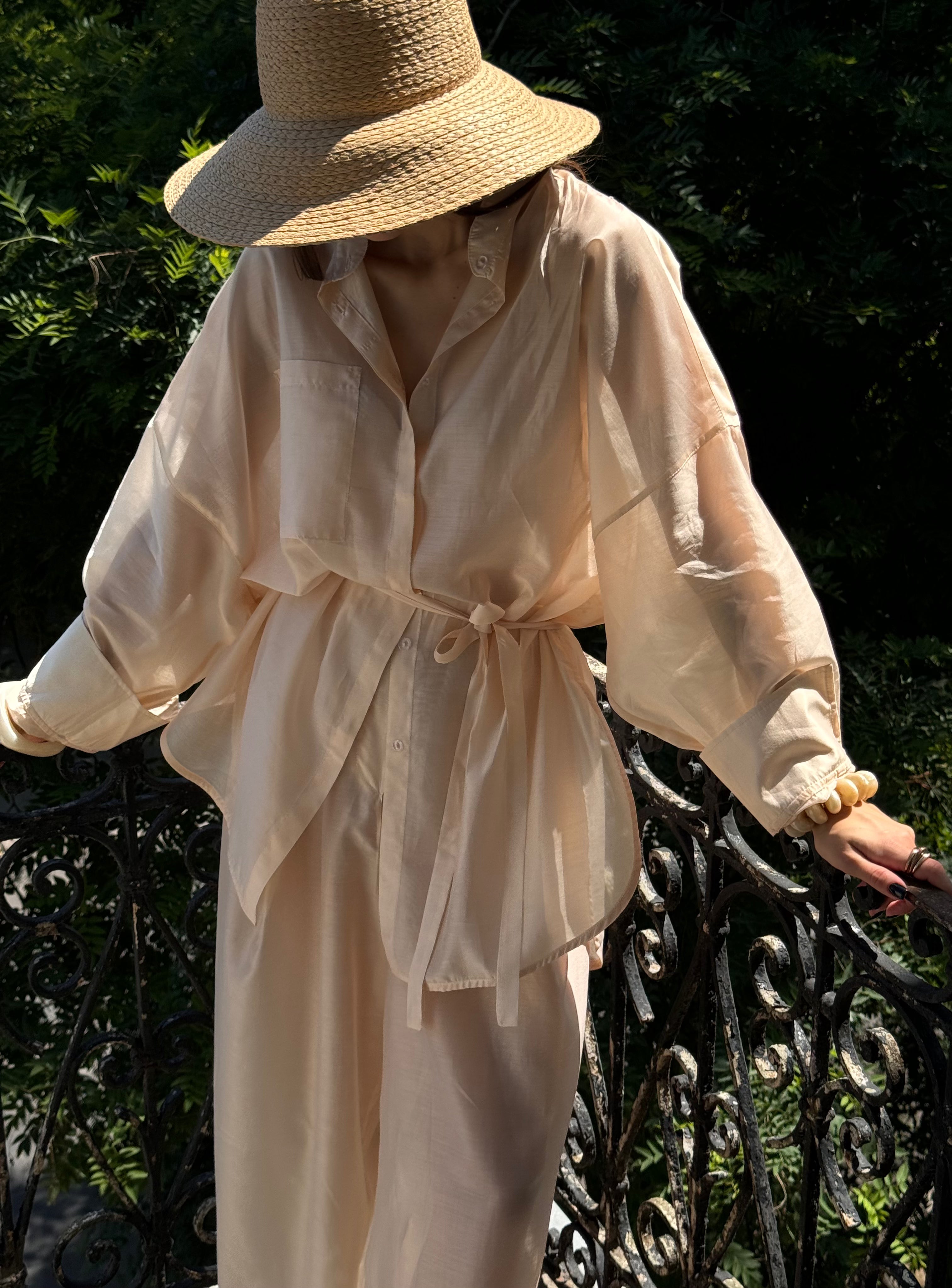 Crafted from pure viscose batiste, this elongated shirt delivers effortless sophistication with architectural details that elevate everyday wear. The voluminous puffed sleeves create dimensional movement, while strategically placed side slits enhance mobility and silhouette. A refined thin waistband defines the frame without constraint, allowing the fabric's natural drape to shine. The lightweight, breathable construction makes it ideal for warm climates and layering versatility. A timeless piece that transitions seamlessly from casual to refined settings.