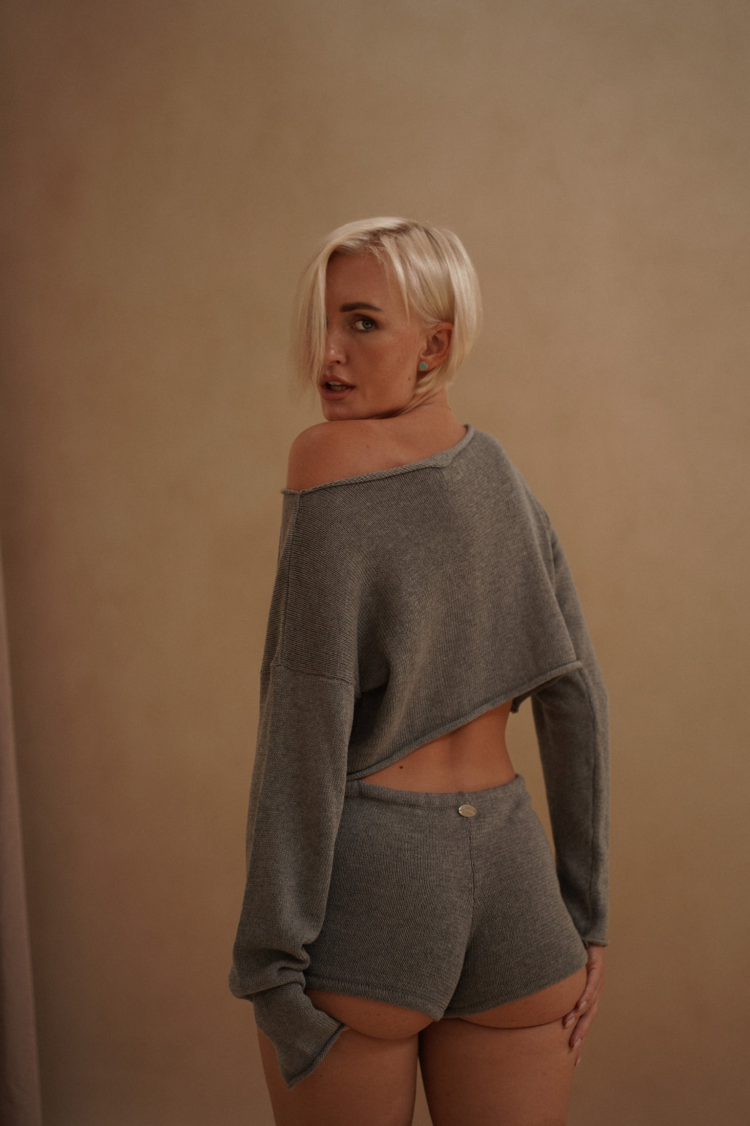TIDEA SET GREY combines effortless comfort with contemporary style. This cotton two-piece set features a cropped long-sleeve top paired with relaxed shorts, designed for versatile everyday wear. The natural breathability of cotton ensures all-day comfort, while the coordinated silhouette offers a polished, put-together look. Ideal for casual outings, lounging, or layering—a wardrobe essential that transitions seamlessly from day to evening.