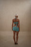 IRISSA SET BLUE combines artisanal craftsmanship with versatile styling. This handmade two-piece set features a soft cotton top with adjustable back ties that conform to your frame, paired with a coordinating mini skirt finished with delicate side ties. The adjustable construction ensures a personalized fit, while the premium cotton fabric delivers comfort and breathability. Perfect for layering or wearing as a complete ensemble, this set brings effortless sophistication to your wardrobe.