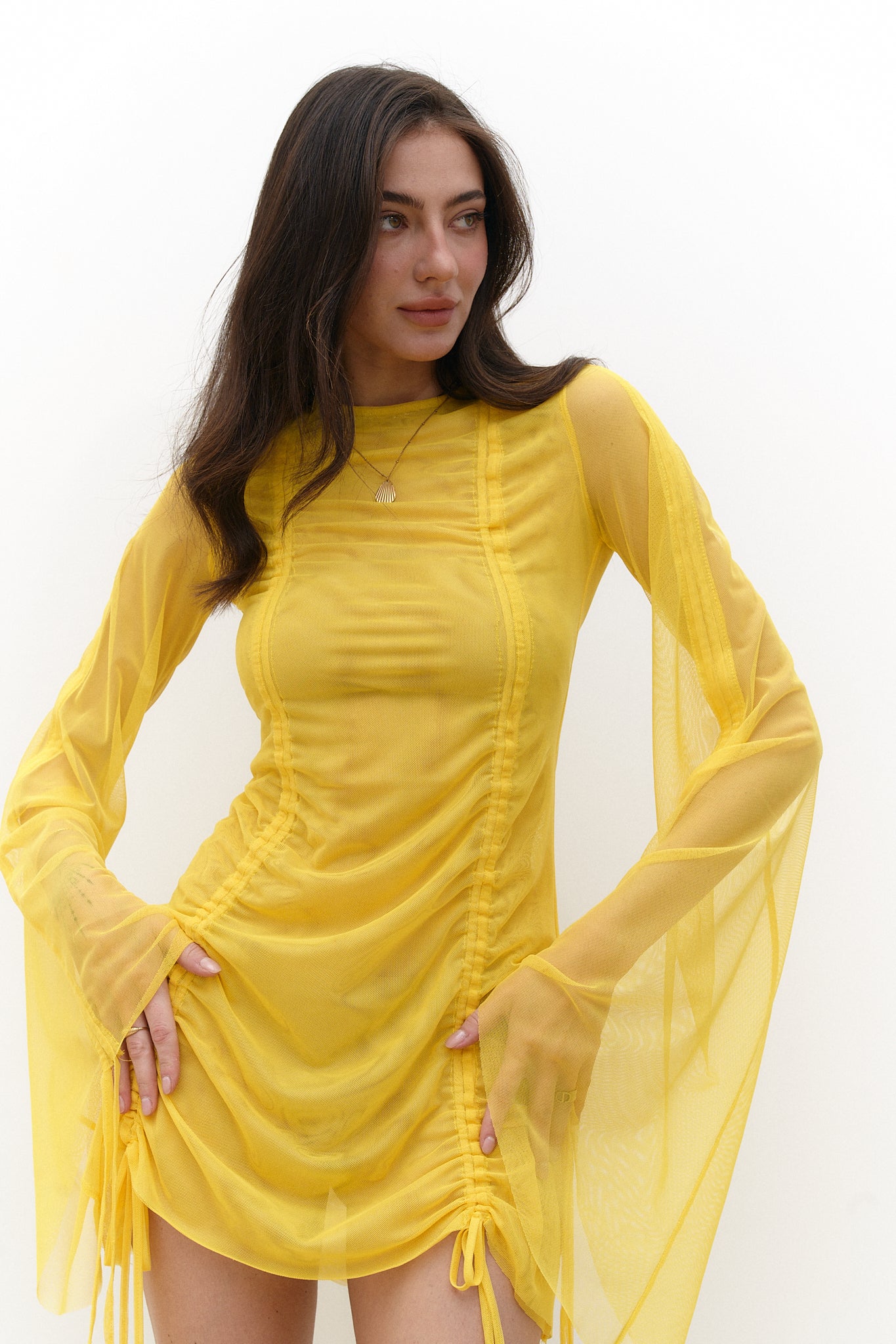 Elevate your wardrobe with the DRESS VIKTORIA YELLOW, a sophisticated piece designed for modern elegance. Crafted from premium 100% polyester, this dress features striking wide sleeves and an open back that create a bold, contemporary silhouette. The fluid fabric drapes beautifully while maintaining its shape, offering both comfort and refined style. Perfect for special occasions or elevated everyday wear, this versatile yellow dress makes a confident statement wherever you go.