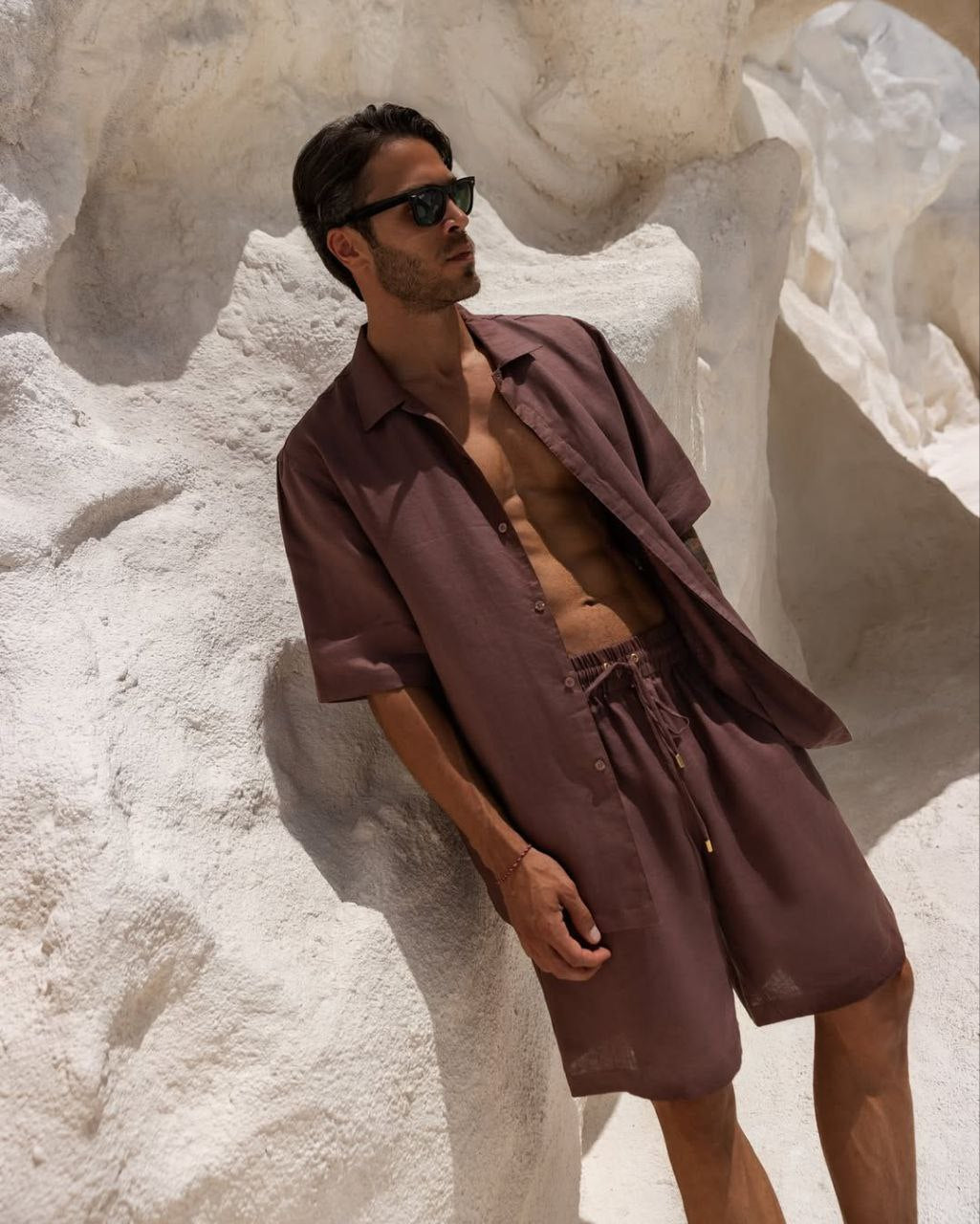 SHORTS LINEN SANTAL CACAO Crafted from 100% Belgian linen, these shorts deliver exceptional breathability and natural temperature regulation ideal for warm climates. The santal cacao colorway offers a sophisticated neutral tone that transitions seamlessly from casual daywear to relaxed evenings. Belgian linen's renowned durability ensures these shorts withstand repeated wear while developing a subtle lived-in patina. The fabric's inherent moisture-wicking properties keep you comfortable throughout the day, while the natural fiber composition makes them an environmentally conscious choice for the discerning wardrobe.
