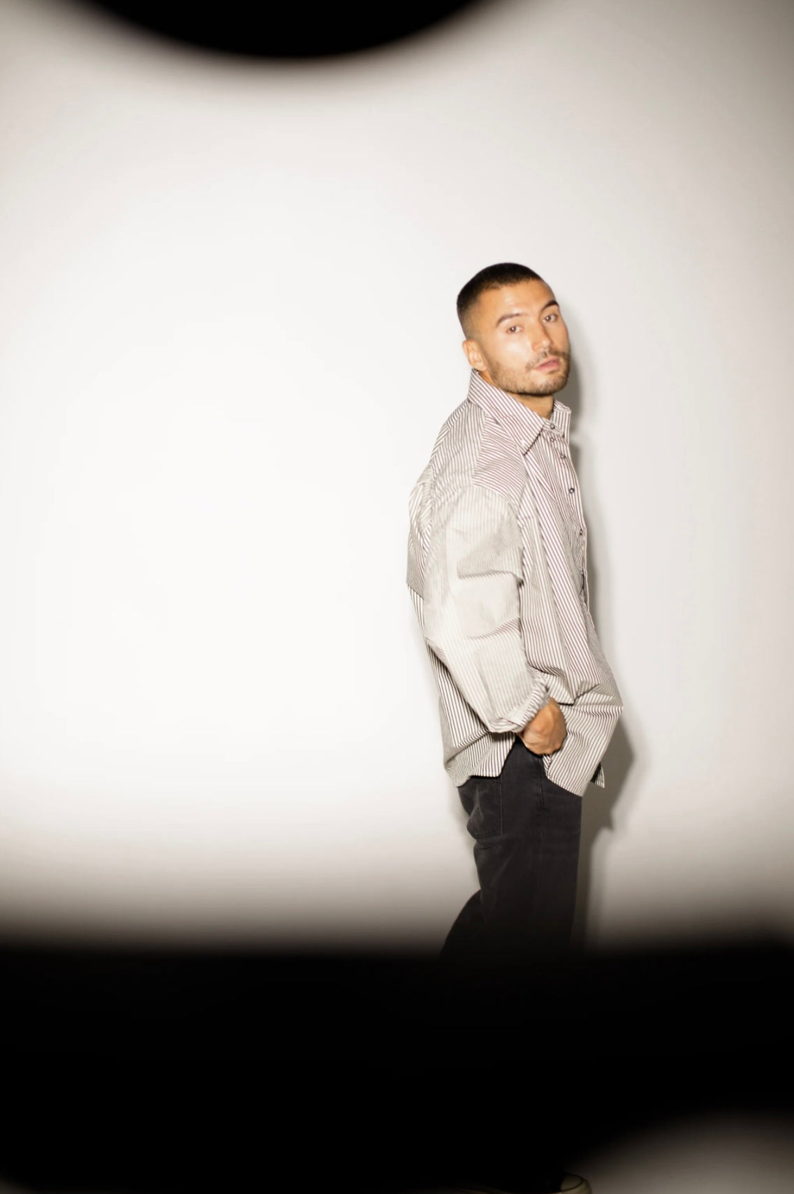 • STRIPED COLLARED BUTTON-UP SHIRT GREY / WHITE