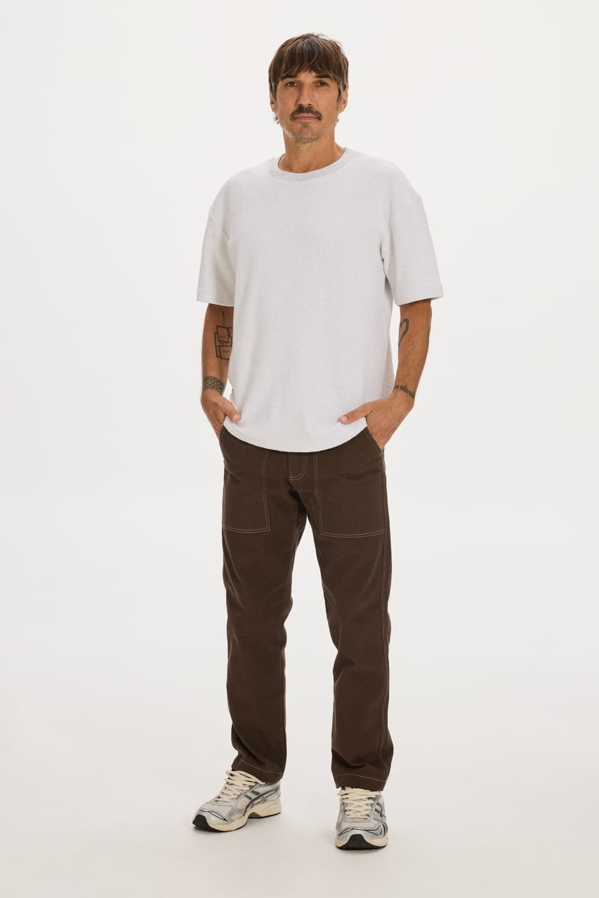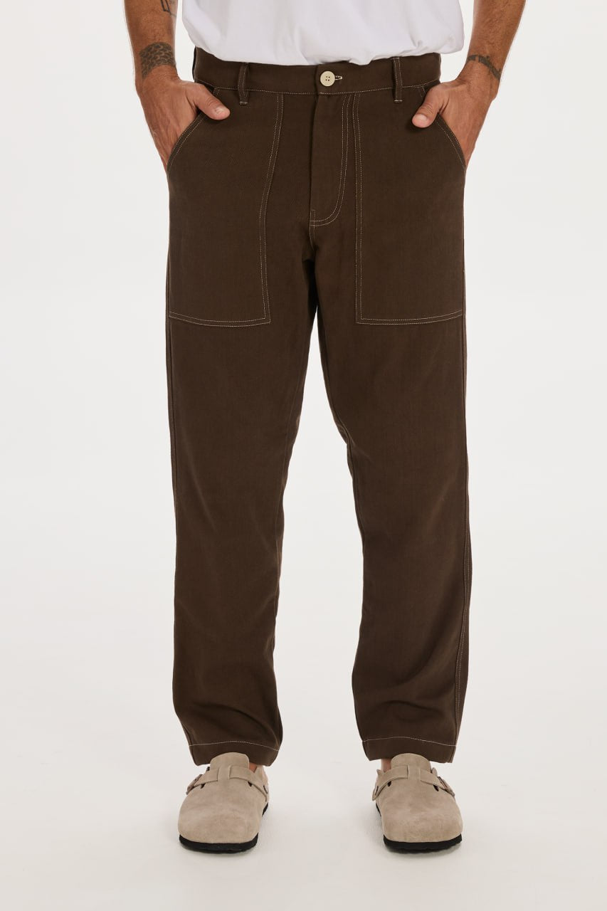 PANTS WORKSHOP BROWN Crafted from premium cotton, these workshop pants deliver durability and comfort for demanding environments. The robust fabric resists wear while maintaining breathability, making them ideal for extended wear on the job site or in the studio. The rich brown tone pairs effortlessly with any work wardrobe, offering timeless versatility. Whether you're tackling hands-on projects or moving between tasks, these pants provide the reliable performance and understated style that professionals depend on.