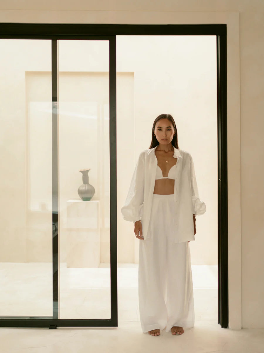 Crafted from pure linen, these PANTS AURA IVORY deliver exceptional breathability and natural drape for warm climates. The lightweight fabric moves with you, offering unrestricted comfort without sacrificing sophistication. Linen's inherent qualities—moisture-wicking and temperature-regulating—make these pants ideal for all-day wear. The ivory tone pairs effortlessly with any wardrobe, while the handcrafted construction ensures quality that endures. Perfect for those who prioritize both elegance and practical comfort.