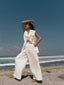 PANTS GOLD LOCK IVORY Elevate your wardrobe with these handcrafted wide-leg linen trousers, designed for those who appreciate refined simplicity. Constructed from 100% pure linen, these trousers deliver exceptional breathability and natural temperature regulation, making them an ideal choice across seasons. The relaxed silhouette strikes a balance between contemporary ease and timeless sophistication, while the generous cut ensures unrestricted movement and all-day comfort. Lightweight yet structured, they transition seamlessly from casual daytime wear to elevated evening occasions. A versatile essential for the discerning dresser seeking quality and understated elegance.